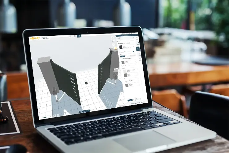 Im 3D-Konfigurator für Gartentore und Zäune werden die Motoren sowie das dazugehörige Zubehör (z. B. Lichtschranken oder Warnleuchten) dargestellt, um eine möglichst realistische Darstellung des fertigen Projekts zu ermöglichen.